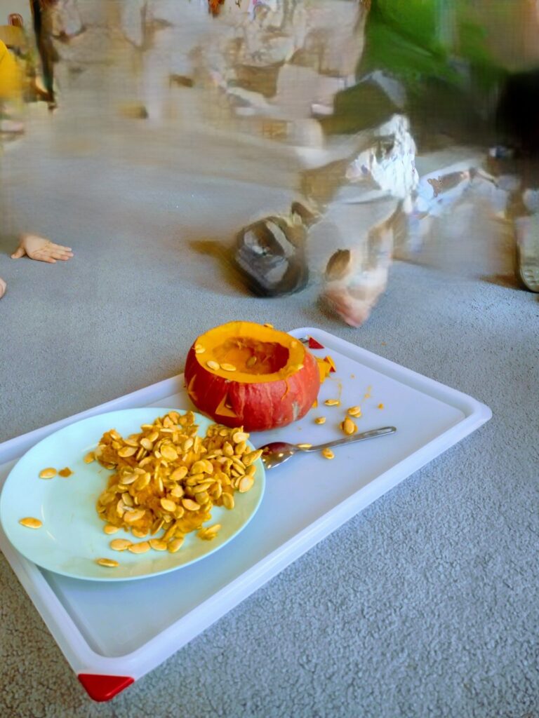 W naszym przedszkolu dzień dyni wykorzystaliśmy na naukę, zabawę oraz rozwijanie kreatywności. Dzieci miały okazję obserwować różne rodzaje dyni w naszym przedszkolnym dyniolandzie, poznać smak zupy dyniowej i wykonać sensoryczne masy.