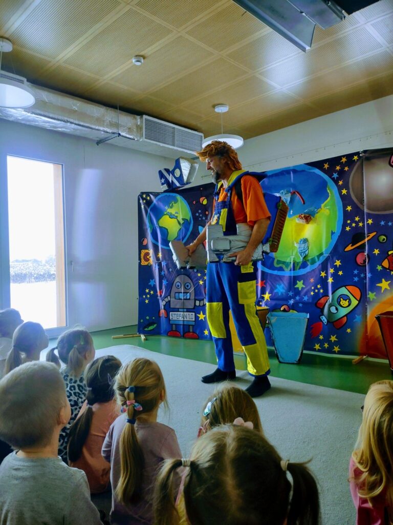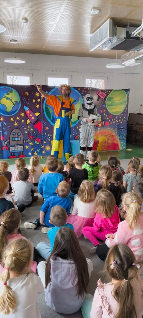 Przedszkolaki uczestniczyły w przedstawieniu pt. Profesor Wodorek w Kosmosie. Dzieci miały mnóstwo okazji do śmiechu oraz przypomnienia sobie jak ważne jest dbanie o naszą planetę Ziemię 🌍 oraz pomoc innym ❤️