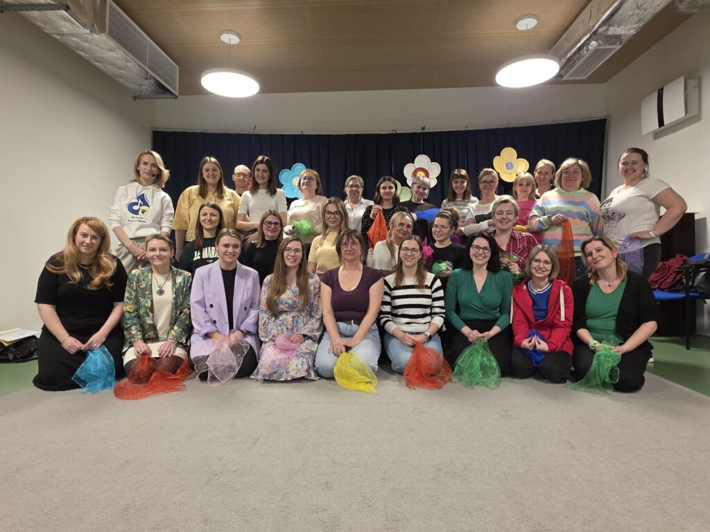 Panie nauczycielki oraz Pani Dyrektor uczestniczyły w piątkowym szkoleniu prowadzonym przez panią Agnieszkę Pokorską z Belmuza. Warsztaty były poświęcone zabawom muzyczno-rytmicznym oraz aktywnemu słuchaniu muzyki. Celem szkolenia było wyposażenie nauczycieli w praktyczne narzędzia, które można wykorzystywać w codziennej zabawie z dziećmi.